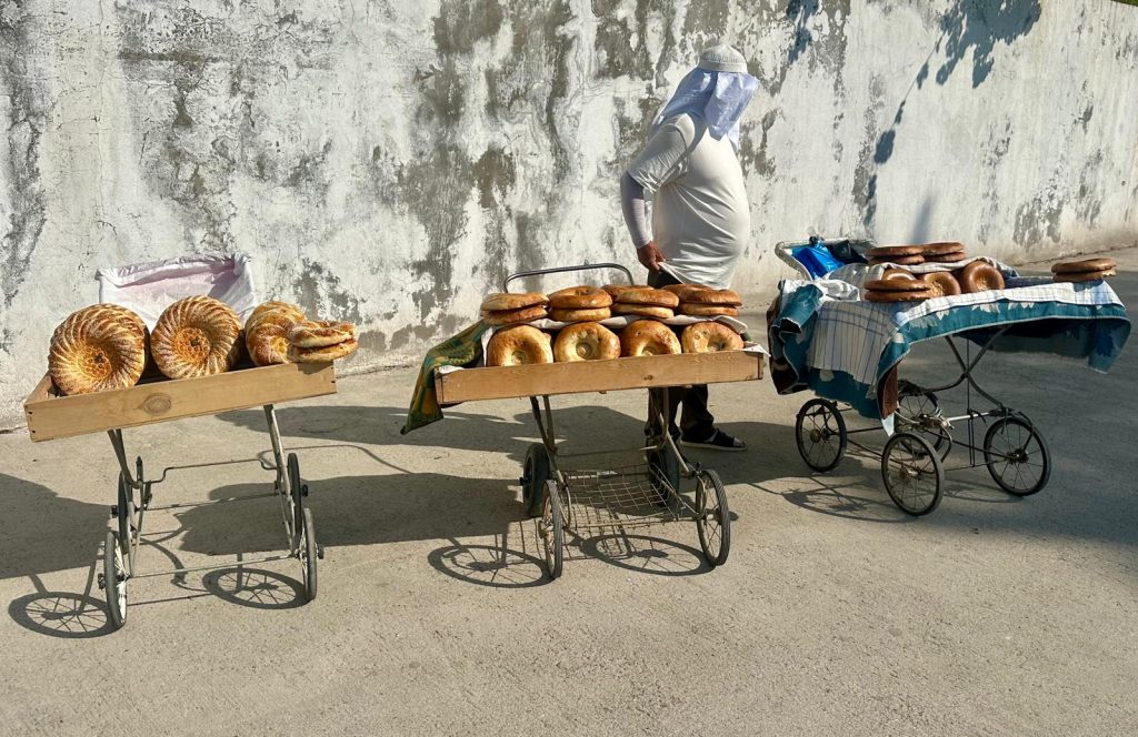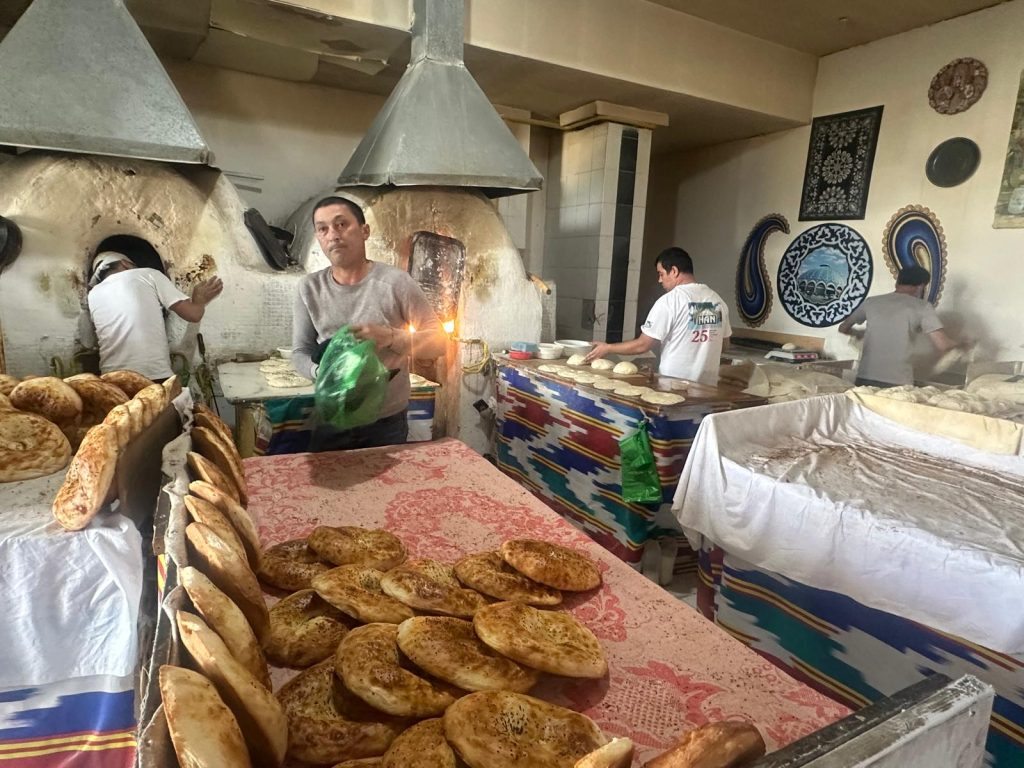 Earlier in the journey the group spent time wandering through the remarkable Chorsu Bazaar in Tashkent, Uzbekistan. Located in the city’s old town beneath a vast blue-domed structure, the market has been a lively centre of trade and daily life for more than 500 years. Today it remains a bustling hub filled with fresh produce, spices, textiles and local handicrafts.